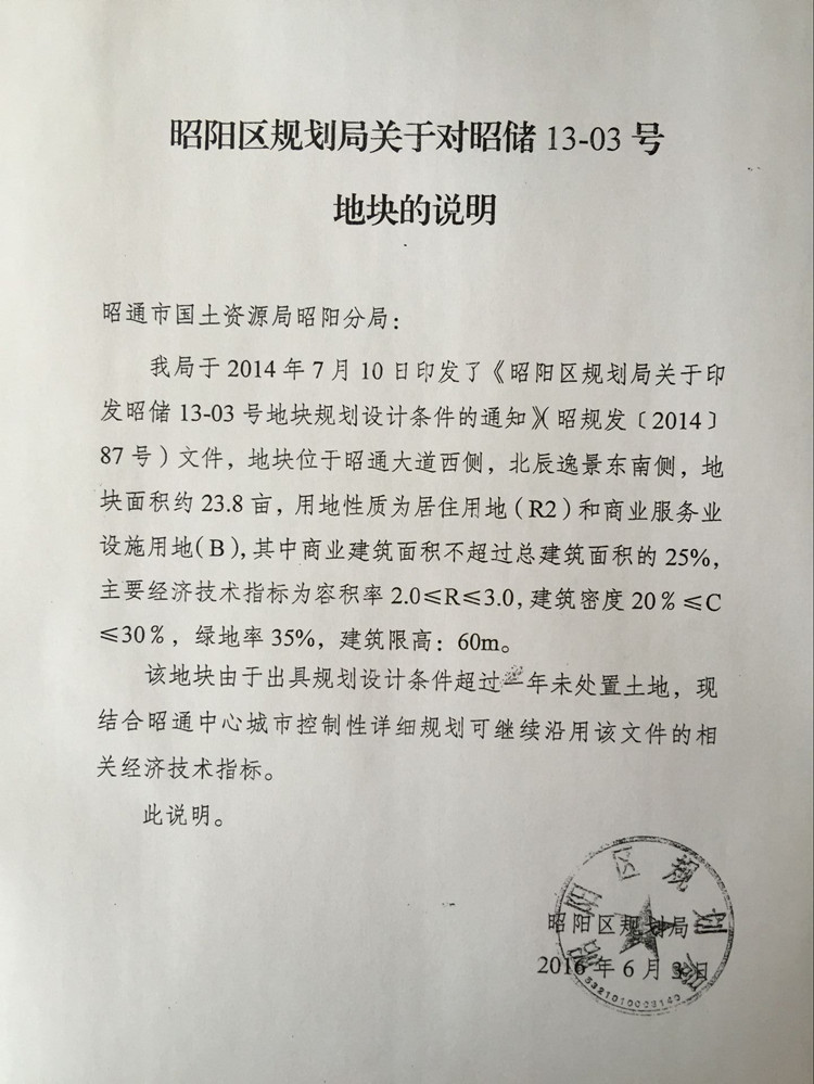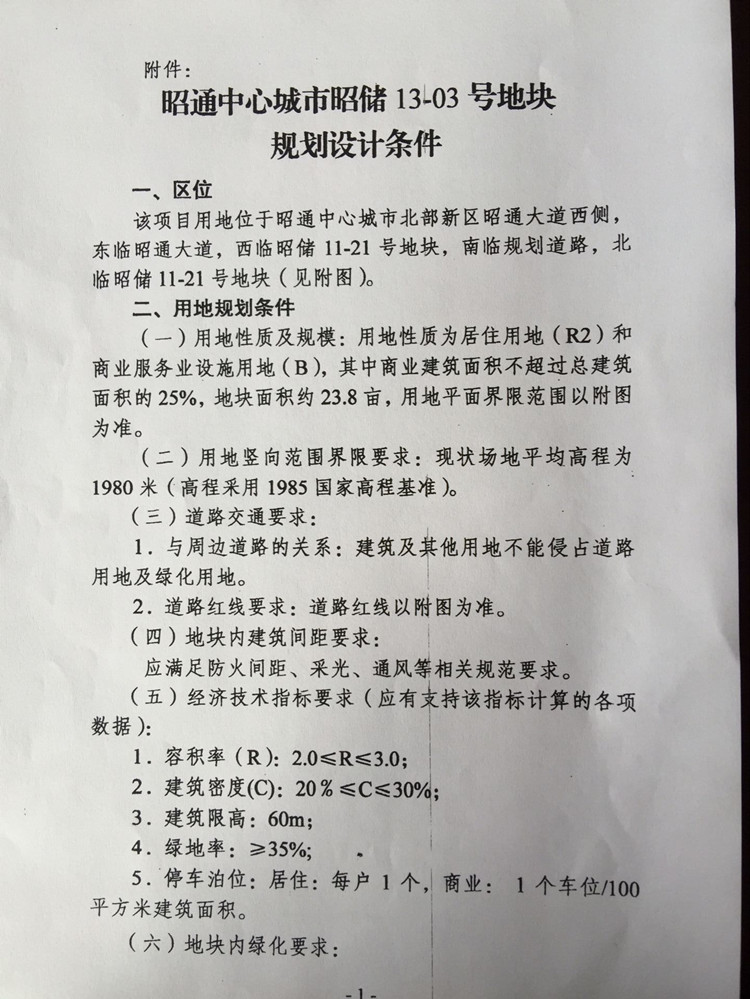 昭通中心城市13-03號國有建設(shè)用地使用權(quán)規(guī)劃條件